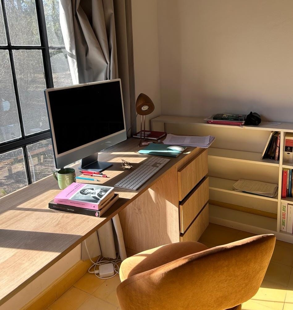 La rutina depende, porque como Santiago y yo abarcamos casi todas las tareas vinculadas al libro, en general empiezo el día escribiendo correos, una parte del trabajo es la gestión. Hacemos toda la parte de prensa, también llevamos las redes, entonces, bueno, de repente estoy trabajando en un Drive y armo un posteo y después vuelvo a trabajar en el Drive. Nosotros trabajamos en nuestra casa, vivimos en un lugar bastante aislado en las montañas, y por momentos siento que es un trabajo muy entremezclado con la vida también, de repente estoy cocinando con Santi y estamos hablando acerca de la editorial, del catálogo del año que viene, la prensa, el precio de los libros. Hay algo ahí que es transversal a la vida.